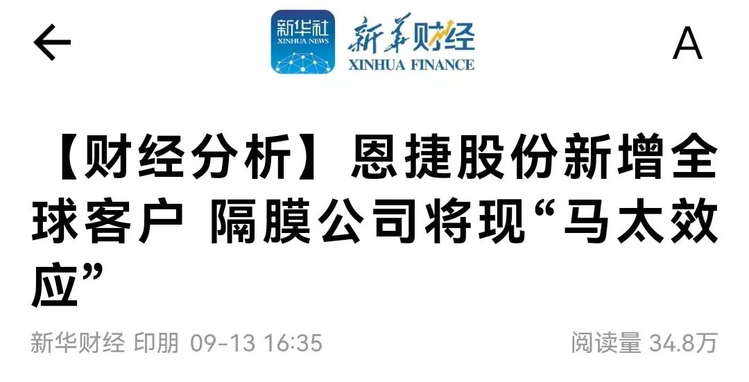 此前新华财经报道提及,,,,,,,,“2022年,,,,,,,,中国企业占有全球隔膜市场份额80%以上。。。。。。。。从隔膜下游电池厂需求端来看,,,,,,,,以新能源汽车为代表的强劲新动能,,,,,,,,仍然有望一连拉动隔膜行业生长。。。。。。。。”“剖析以为,,,,,,,,市场南北极分解,,,,,,,,隔膜企业盈利能力或将拉开差别。。。。。。。。”