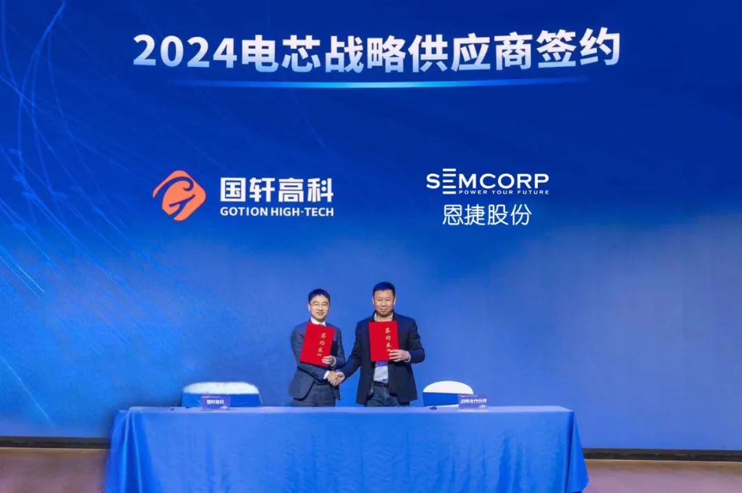 2023年12月23日,,,,,,,上海jdb电子网站获国轩高科“卓越孝顺”奖并签约成为国轩高科2024电芯战略供应商。。。。。。。。jdb电子网站股份副总裁吴量(右一)领奖并签约。。。。。。。。