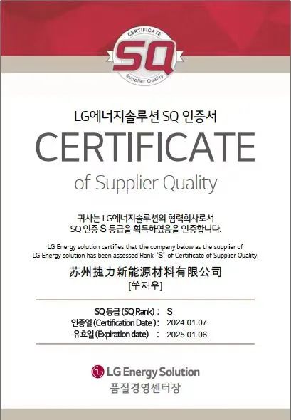 苏州捷力荣获2023年度LG新能源“S级供应商”称呼。。。。。。。。