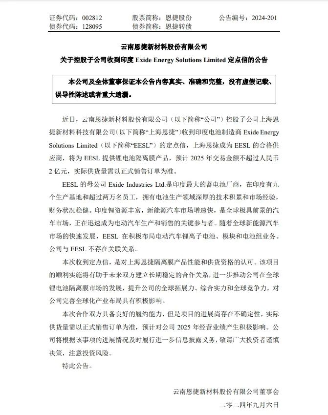 ¿ËÈÕ£¬£¬£¬£¬£¬£¬£¬jdbµç×ÓÍøÕ¾¹É·ÝÆìÏÂÉϺ£jdbµç×ÓÍøÕ¾ÊÕµ½Ó¡¶Èµç³ØÖÆÔìÉÌExide Energy Solutions Limited£¨ÒÔϼò³Æ¡°EESL¡±£©µÄ¶¨µãÐÅ£¬£¬£¬£¬£¬£¬£¬È·¶¨³ÉΪEESLµÄ¼°¸ñ¹©Ó¦ÉÌ£¬£¬£¬£¬£¬£¬£¬½«ÎªEESLÌá¹©ï®µç³Ø¸ôĤ²úÆ·£¬£¬£¬£¬£¬£¬£¬Ô¤¼Æ2025ÄêÉúÒâ½ð¶î²»Áè¼ÝÈËÃñ±Ò2ÒÚÔª£¬£¬£¬£¬£¬£¬£¬ÏÖʵ¹©»õÁ¿ÐèÒÔÕýʽÏúÊÛ¶©µ¥Îª×¼¡£¡£¡£¡£¡£¡£